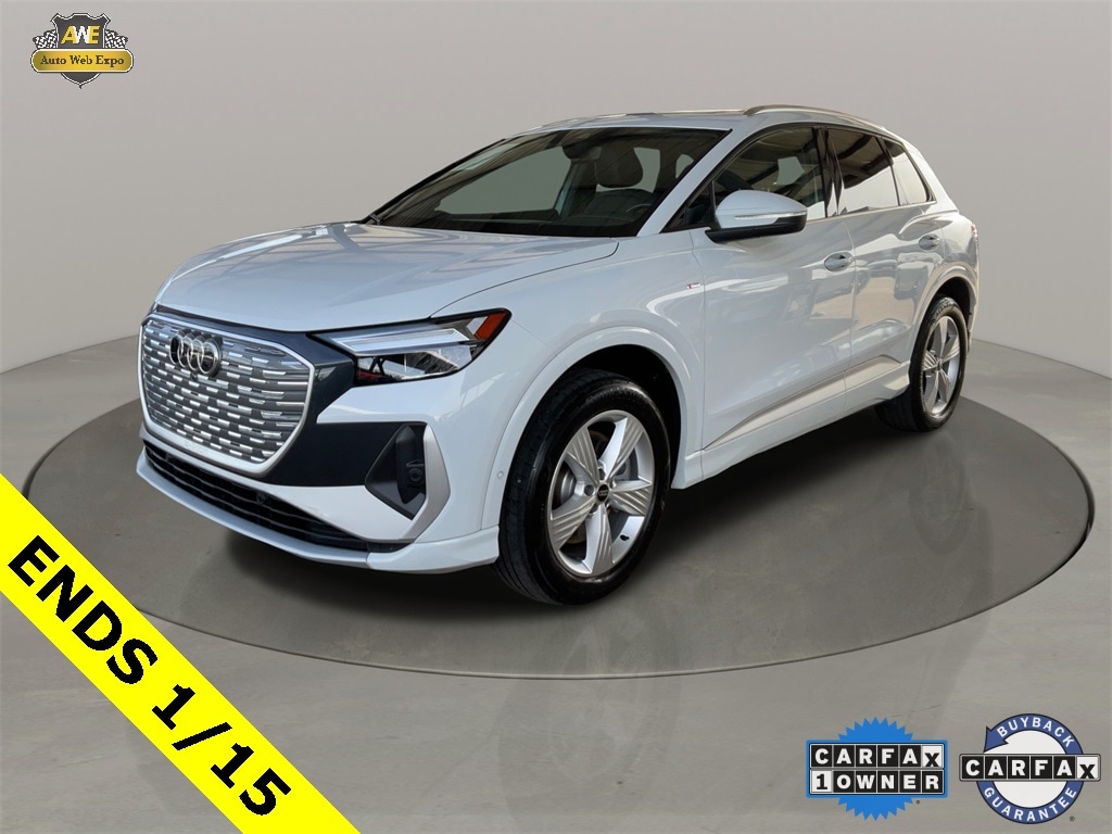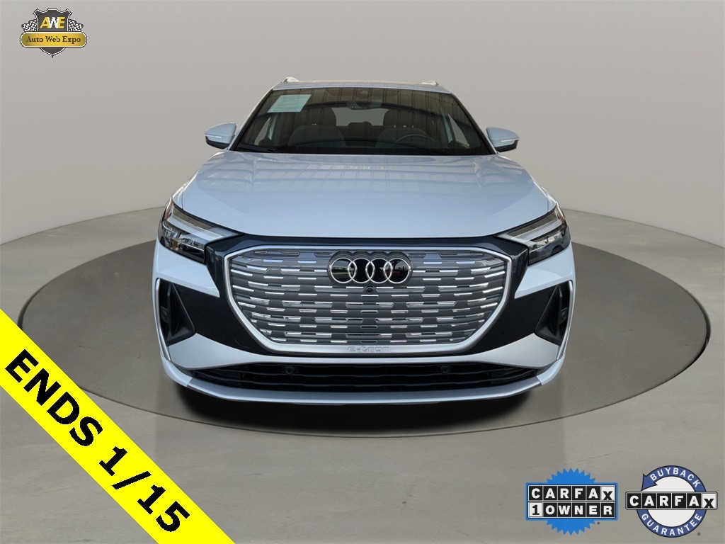 2023 Audi Q4 e-tron Premium Plus quattro featuring premium Plus equipment with quattro all wheel drive, long range electric powertrain, panoramic power sunroof, Virtual Cockpit digital gauge display, MMI touch display with navigation, heated front seats, Audi pre sense safety systems, power liftgate, and premium audio for enhanced driving enjoyment. This electric SUV pairs Audi refinement with advanced tech and confident all weather traction.