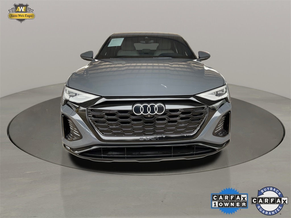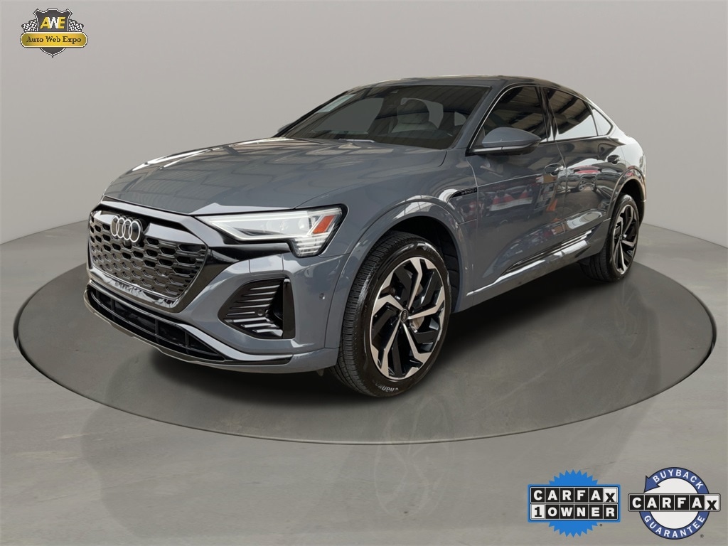 2024 Audi Q8 Sportback e-tron Premium Plus S line quattro featuring a long range electric powertrain with quattro all wheel drive, S line sport styling, premium Plus equipment, panoramic glass roof, Virtual Cockpit digital instrument cluster, MMI touch display with navigation and wireless smartphone integration, heated and ventilated seating with leather seating surfaces, upgraded Bang and Olufsen premium audio system, adaptive suspension, advanced driver assistance and safety systems, and power tailgate with hands-free access. This luxurious electric SUV coupe blends high performance capability, striking design, and cutting edge technology for confident driving in all conditions.