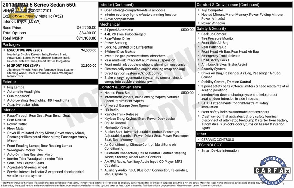 This stunning 2013 BMW 5 Series 550i (VIN: WBAFR9C50DD227101) offers performance and prestige at an unbeatable value. Contact Auto Web Expo today to schedule a test drive. Prices are subject to change. Please call to verify availability. We proudly serve Plano, Dallas, Frisco, McKinney, Richardson, Garland, Allen, Wylie, Murphy, Addison, Rockwall, Rowlett, Carrollton, Fort Worth, Prosper, The Colony, Highland Park, Hebron, and Farmers Branch.